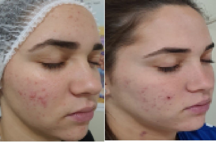 (mụn trứng cá thông thường vừa) Tổng thời gian điều trị 10 phút. Đầu s-430. Không sử dụng thuốc uống hoặc thuốc bôi ngoài da 6 tháng trước đó, trong thời gian điều trị và theo dõi.